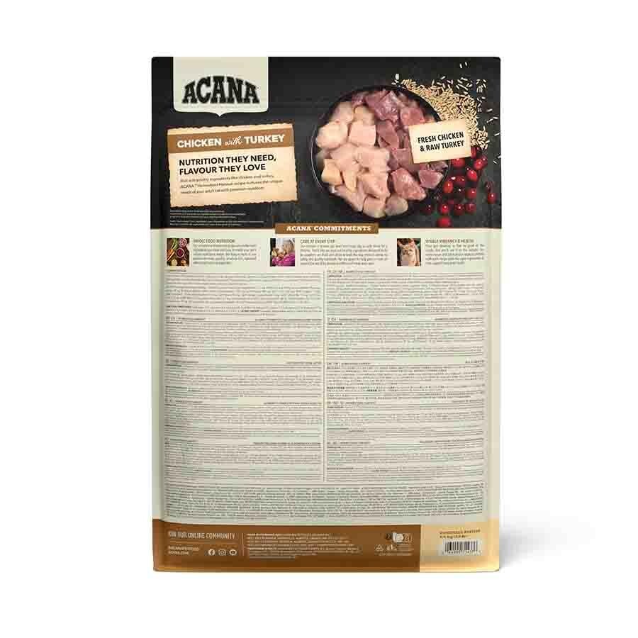 İçindekiler:Taze tavuk eti (17%), suyu alınmış tavuk eti (15%), suyu alınmış hindi eti (13%), bütün yulaf, bütün bezelye, tavuk yağı (7%), bütün yeşil mercimek, bütün nohut, bütün kırmızı mercimek, taze gezen tavuk yumurtası (4%), taze ahindi eti (4%), mercimek lifi, kömür balığı yağı (1%),taze ördek eti (1%), tavuk kıkırdağı (1%), taze tavuk sakatatları (karaciğer,kalp) (1%), taze hindi sakatatları (karaciğer, kalp) (1%), kurutulmuşyosun, taze bütün balkabağı, taze bütün kabak, taze bütün kızılcık, taze bütün yaban mersini.