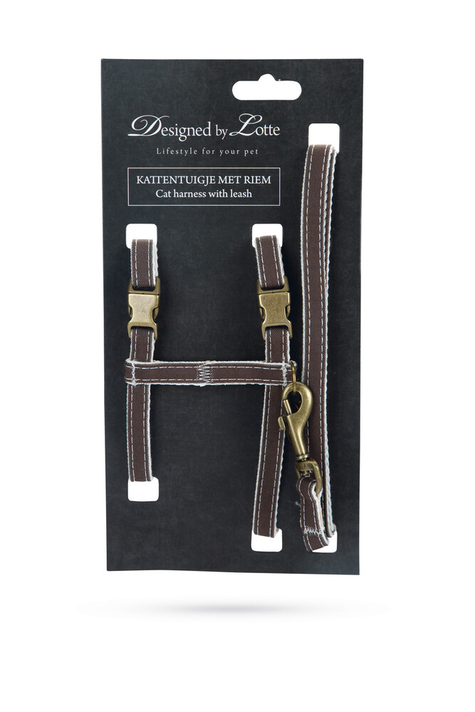 Beeztees DBL Kedi Göğüs Tasması ve Gezdirme Kayışı, 130cm, Kahverengi, 27-45cm