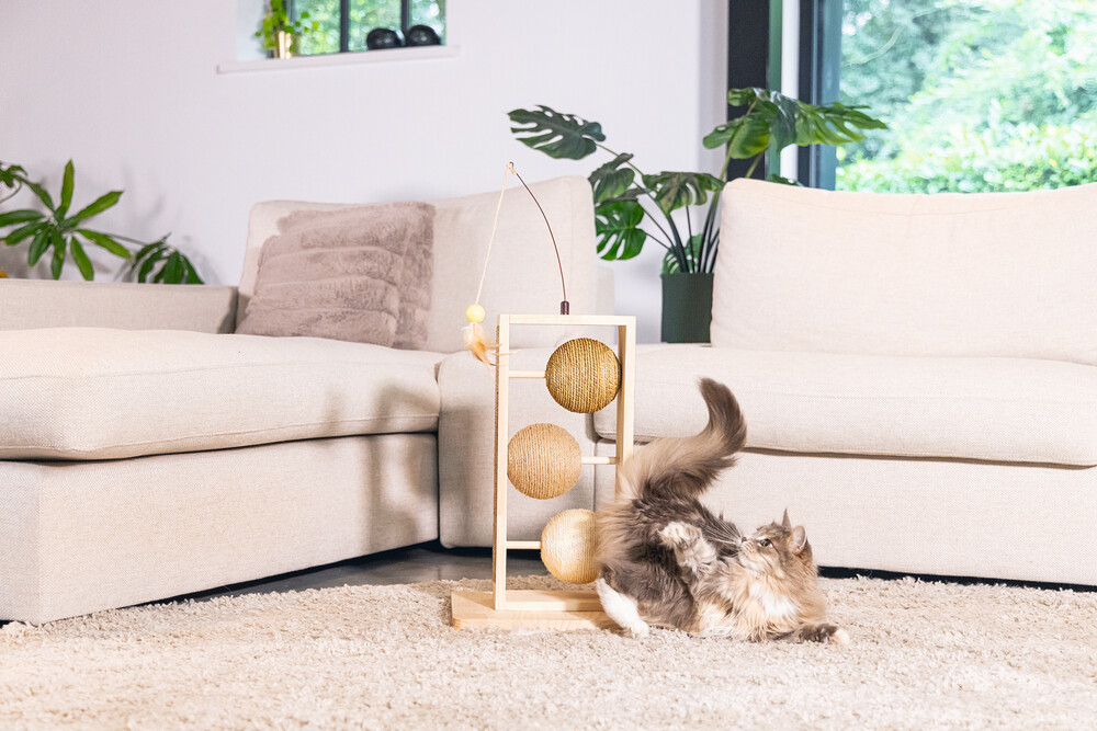 Designed by Lotte Lomax Tırmalama Topları, eviniz için gerçek bir tasarım ürünüdür ve kedinizin çok eğleneceği tırmalama aktiviteleri sunar! Lomax ile sanki 3 sıra oynayabiliyormuşsunuz gibi görünüyor, çünkü alt alta üç tırmalama topu bulunuyor. Lomax, hoş bir açık krem rengi olan kauçuk ağacından yapılmıştır. Ayrıca, her top kendi ip türünü içerir: jüt, sisal veya deniz otu. Ekstra eğlence için güzel bir oltayla birlikte bir oyun tüyü bulunmaktadır! Bu tırmalama toplarıyla kedinize sadece zevk vermekle kalmaz, aynı zamanda iç mekanınızda harika görünür! - Kauçuk ağacından yapılmış - 3 tür ip ile yapılmış: jüt, sisal ve deniz otu Ölçüler: 34.5x29.5x50 cm
