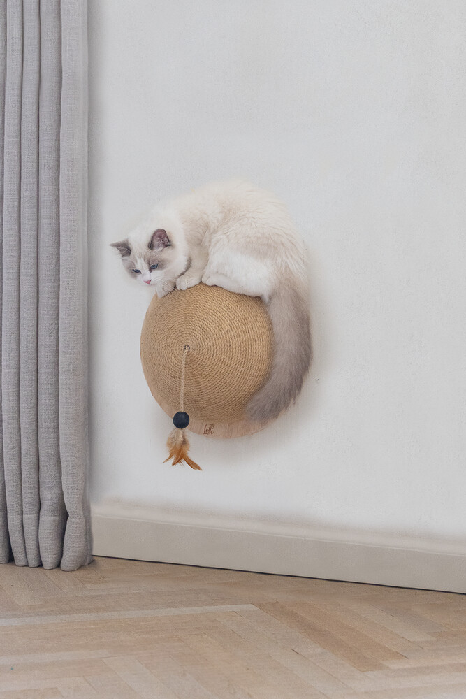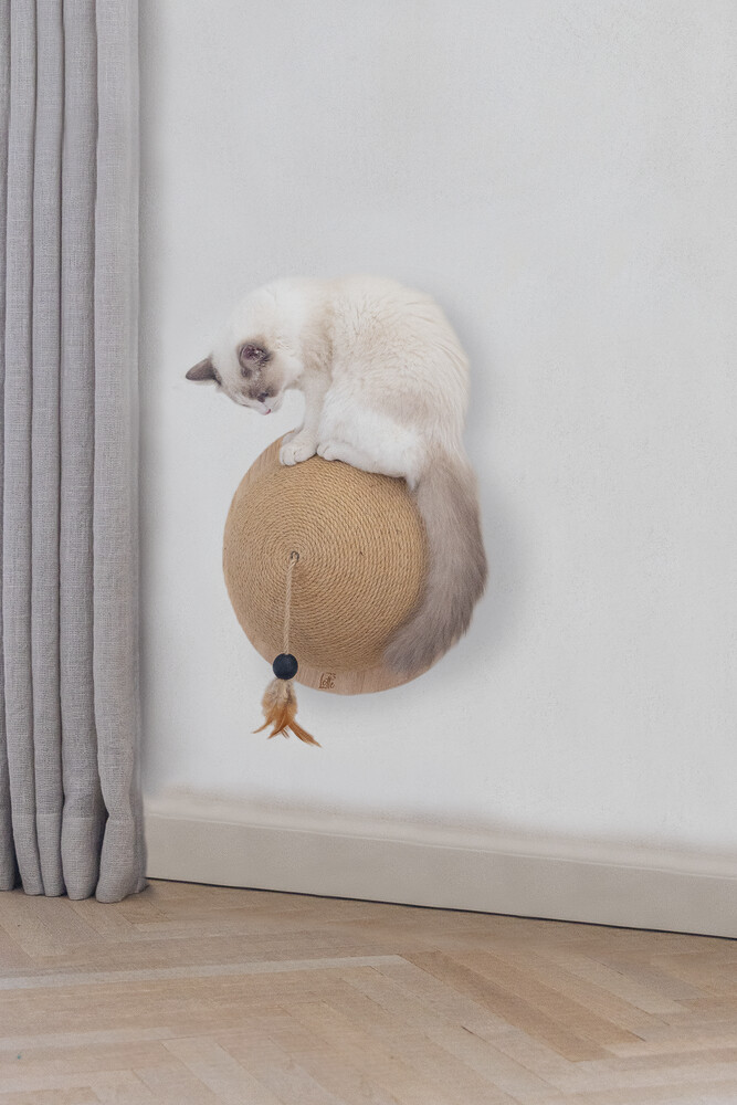 Kedinize benzersiz, güzel ve aynı zamanda harika bir tırmalama direği sunmak ister misiniz? O zaman Designed by Lotte Half Scratch Globe Vivi kesinlikle tavsiye edilir. İsminden de anlaşılacağı gibi bu tırmalama direği, kedinizin doyasıya tırmalayabileceği yarım bir küreden oluşmaktadır. Kürenin etrafına sarılı tırmalama kısmı jüt ipten yapılmıştır. Tırmalamaya ek olarak, bu tırmalama topu aynı zamanda oynamak için de harikadır. Bu, küreye bağlı tüylerle süslenmiş kedi oyuncağından dolayıdır. Kedinizin bu topu yatay veya dikey olarak tırmalamasını isteyip istemediğinizi seçebilirsiniz. Aslında, küreyi yere koyabilir, ancak duvara asmak için de seçebilirsiniz. Askı sistemi ve talimatlar küre ile birlikte verilmektedir. Designed by Lotte Half Scratch Globe Vivi, 7 kg'a kadar kediler için uygundur. Zemini çiziklere karşı korumak için, alt tabanın altına eklenebilen kaymaz kapaklar dahildir. - Yere koymak veya asmak için - Kaymaz kap dahil.