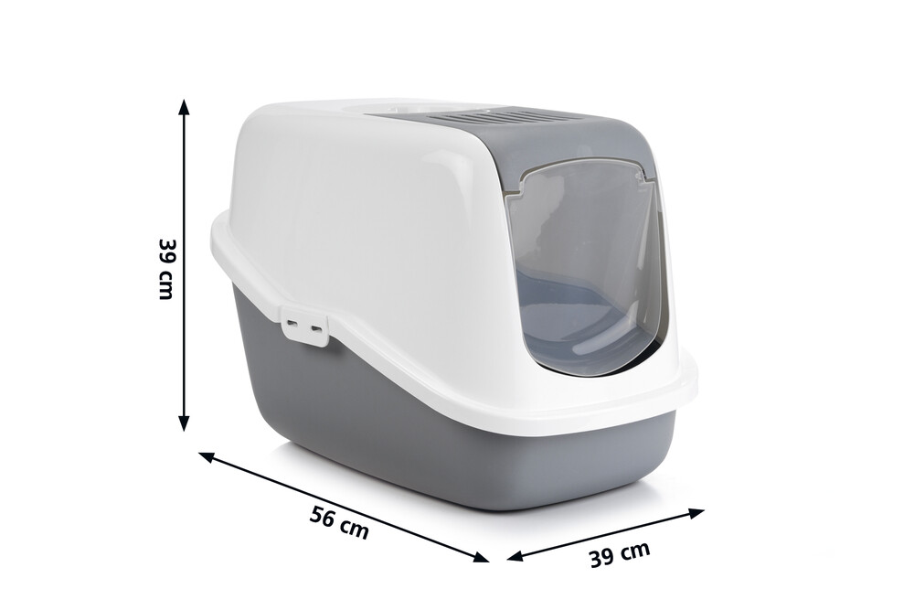 Beeztees Kapalı Kedi Tuvaleti, Koku Filtreli, Gri Beyaz, 56x39x39cm