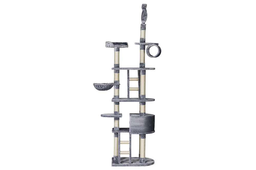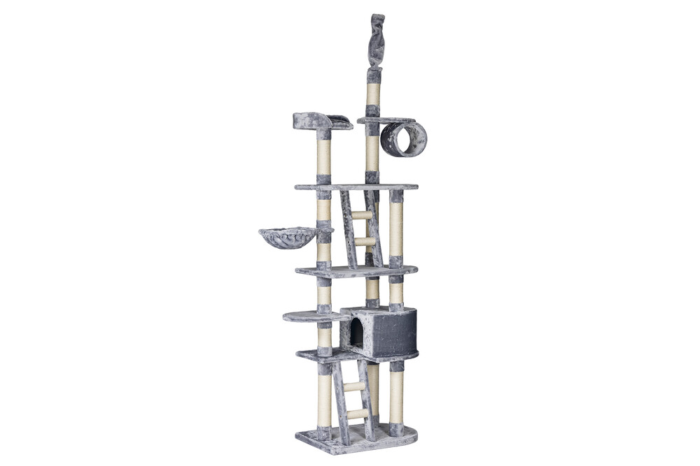 Beeztees Magnefiq Tırmalama Direği, kediniz için gerçek bir oyun cennetidir! Bu tırmalama mobilyası, küçük dostunuzu büyüleyici bir çekim gücüne sahiptir. Bu tırmalama direği, sayısız tırmalama direkleri, merdivenler ve harika uyuma yerleri içerir, bu da kedinizin biraz zaman harcamasını sağlayacaktır. Ayrıca tırmalama direği çok yüksektir, böylece kediniz tırmanabilir ve en yüksek platoda her şeyi gözlemleyebilir. Tırmalama direği tavana sabitlenebildiği için, stabilite güçlendirilmiştir. Üstelik tırmalama direği 220 ile 260 cm arasında ayarlanabilir, bu da tırmalama direğinin daha yüksek tavanlar için de uygun olmasını sağlar. Ürün özellikleri: - Direk kalınlığı: 9 cm - Sisal kalınlığı: 5,1 mm - Peluş kalitesi: 480gr/m2 Ölçüler: 70x50x220-260 cm