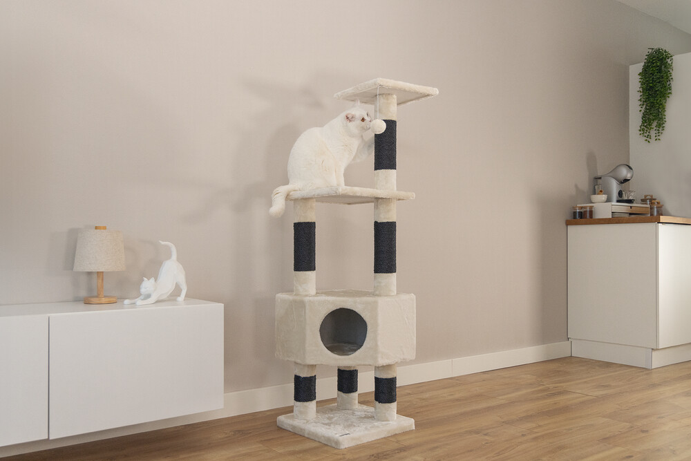 Bir mobilya tırmalama direği, her kedinin temel ekipmanları arasında yer alır. Beeztees Figado Tırmalama Direği ile güzel bir temel atmış olursunuz. Bu tırmalama direği, birkaç sisal direk içerir ve peluş ile daha da işlenmiştir. Kediniz büyük yüksekliklere çıkabilir, çünkü çeşitli platformlar bulunmaktadır. Ayrıca gerçek bir uyku yeri de vardır, burada kediniz korunaklı ve rahatsız edilmeden şekerleme yapabilir. Ekstra oyun eğlencesi için, en yüksek platformda güzel bir oyun topu bulunmaktadır. Ürün özellikleri: - Direk kalınlığı: 9 cm - Sisal kalınlığı: 6 mm - Peluş kalitesi: 480gr/m2 - 3 farklı renkte mevcuttur Ölçüler: 40x40x135 cm