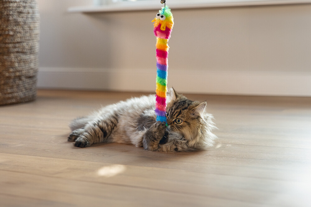 Bu Beeztees kedi oyuncağı ile kedinizle saatlerce eğlenebilirsiniz. Bu kedi oltasının ucunda, kuyruğu ekstra eğlence için çıtçıtlı folyo ile dolu yumuşak bir fare bulunmaktadır. Ayrıca oyuncakta, kedinizin ilgisini daha da artıracak bir zil bulunmaktadır. Oltayı ileri geri hareket ettirdiğinizde, kediniz fareyi yakalamaya çalışacak, bu da onun doğal avcı içgüdüsünü teşvik edecektir. Bu kedi oyuncağı ile birlikte oynamak, kedinizle karşılıklı bağınızı güçlendirecektir. Ayrıca, plastik çubuğa bağlı uzun ip, ellerinizi kedinizin keskin tırnaklarından korur. - Saatlerce eğlence - Çıtçıtlı folyo kuyruklu fare - Dahil zil - Çeşitli renkler Ölçüler: Plastik çubuk: 48x0.8x0.8 cm Fare: 7 cm Kuyruk: 22 cm