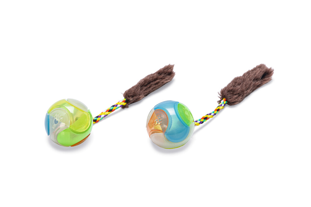 Beeztees Glow Cat Ball eğlenceli bir kedi oyuncağıdır. Bu toplar plastikten yapılmış olup, kuyrukları peluştan yapılmıştır. Top hafif olduğundan, kediniz ona pençesiyle dokunduğu anda tüm yönlere doğru yuvarlanacaktır. Tüm bunlar, kedinizin topu daha ilginç bulmasını sağlar. Bir başka güzel etki ise topun karanlıkta parlayan bir etkiye sahip olmasıdır. - Plastikten yapılmış ve peluş kuyruklu - Karanlıkta parlar - 2'li paketler halinde paketlenmiştir - Çeşitli renklerde Ölçüler: 18x4.5x4.5 cm
