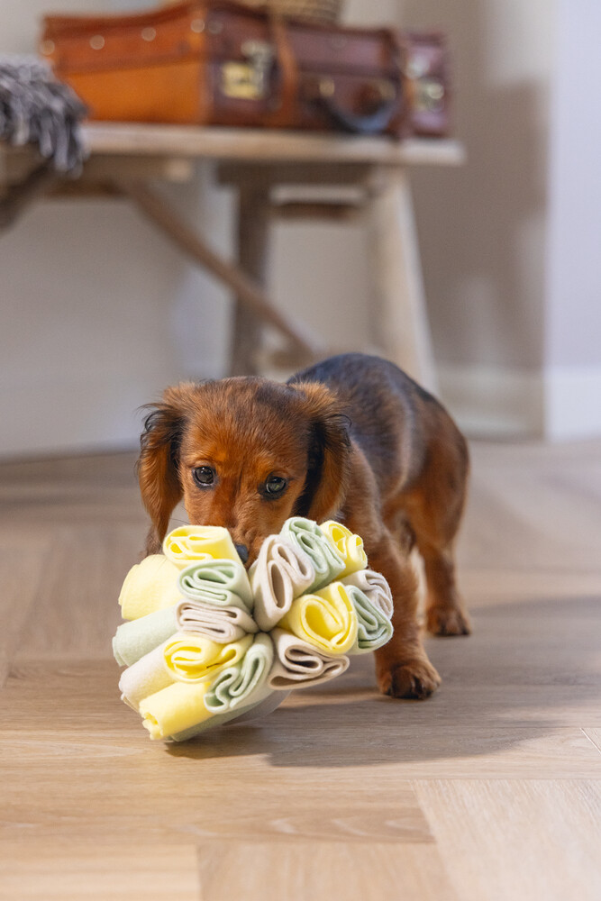 Beeztees Puppy Izzy Oyun Topu köpeğinizi büyük ölçüde zorlar. Uzun iplerin içine kurabiyeler veya atıştırmalıklar saklayabilir, yavru köpeğiniz atıştırmalıkları bulmak için elinden gelenin en iyisini yapmak zorundadır. Bu oyun topu tamamen Polar kumaştan yapılmıştır, bu da onu yavru köpeğinizin burnu için çok yumuşak yapar. Bu snuffle topu ile birlikte oynayabilir veya yavrunuz tek başına oynayabilir. Lütfen yavru köpeğinizin topa ısırmasına veya çiğnemesine dikkat edin. - Polar kumaştan yapılmıştır - Zihinsel uyarım Boyut: çap 13cm.