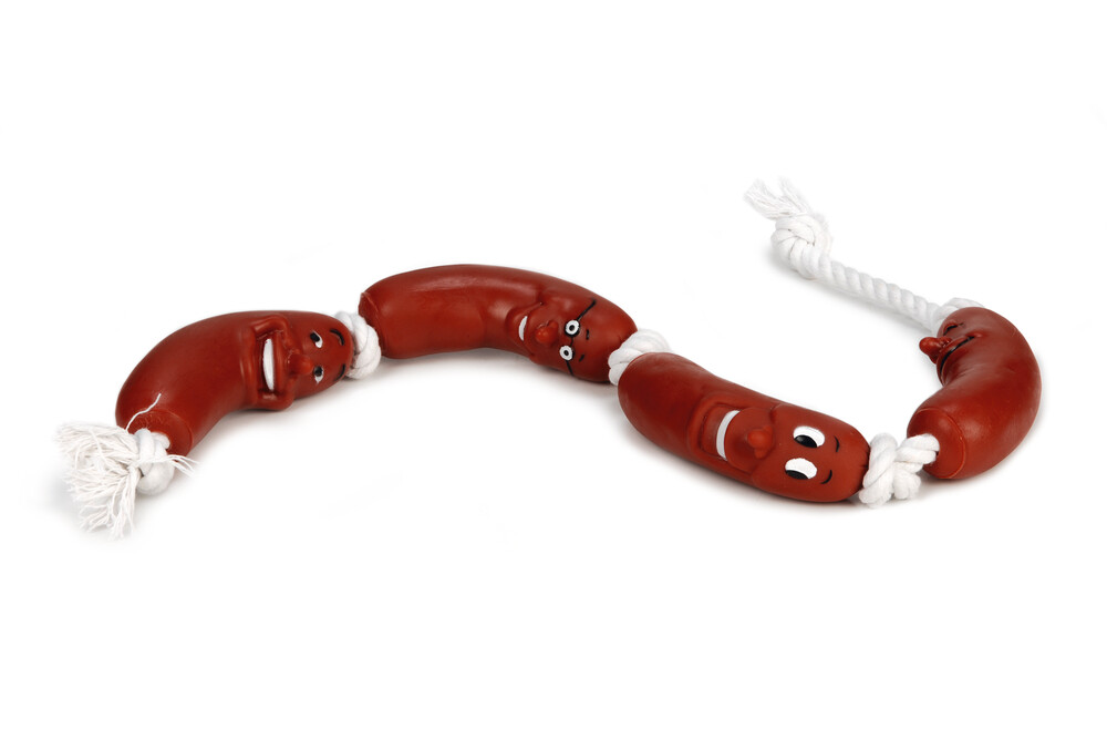 Sosisle oynamaktan daha eğlenceli ne olabilir? Tabii ki daha fazla sosisle oynamak! Bu, Beeztees'ten bu köpek oyuncağı ile mümkün. Dört sosis vinilden yapılmış olup, pamuklu flossy ipi ile birbirine dolanmıştır. Flossy ipi, köpeğinizin dişlerinin bakımına oyunlu bir şekilde katkıda bulunur. Bu köpek oyuncağında, oynamayı daha da eğlenceli hale getiren bir düdük vardır. Bu, çoğu köpeği daha fazla oynamaya teşvik eder. İpucu: Köpeğinize barbekü yaptığınızda sosis oyuncağını verin. Böylece köpeğiniz de sizinle birlikte barbekü eğlencesinin tadını çıkarabilir. - 4 vinil sosis - Pamuklu flossy ip dahil - Flossy ip diş bakımına katkıda bulunur Ölçüler: 65x5.5x3.5 cm