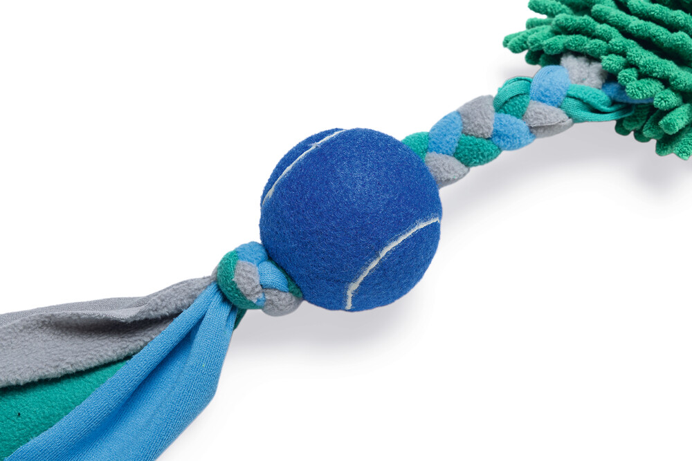 Beeztees Köpek Oyuncağı Kino+Ball ile birlikte oyun oynamak mümkün! Bu peluş köpek oyuncağı, çekişme ve getirme oyunları için mükemmeldir. Ayrıca, Kino'nun içindeki çıtçıt folyo, köpeğinizin sizinle oynamaya daha hevesli olmasını sağlar. Ek olarak, oyuncakta ekstra oyun zamanı sağlayan bir tenis topu bulunmaktadır! Sağlam naylonla sarılmış elastik kordon, çekme işleminin sorunsuz olmasını ve köpeğinizin dişleri veya vücudu üzerinde fazla baskı hissetmemesi için elastik şok emici sağlar. Sapı, oyuncağı tutmayı veya sallamayı kolaylaştırır. Bu köpek oyuncağı, köpeğinizle birlikte oynamak için idealdir, bu da aranızdaki bağı güçlendirir ve oyunu daha da eğlenceli hale getirir. - Çıtçıt folyo ile - Tenis topu ile - Şok emici ile - Sap ile - Çekme ve getirme oyunları için uygundur. Ölçüler: 90x10x6 cm