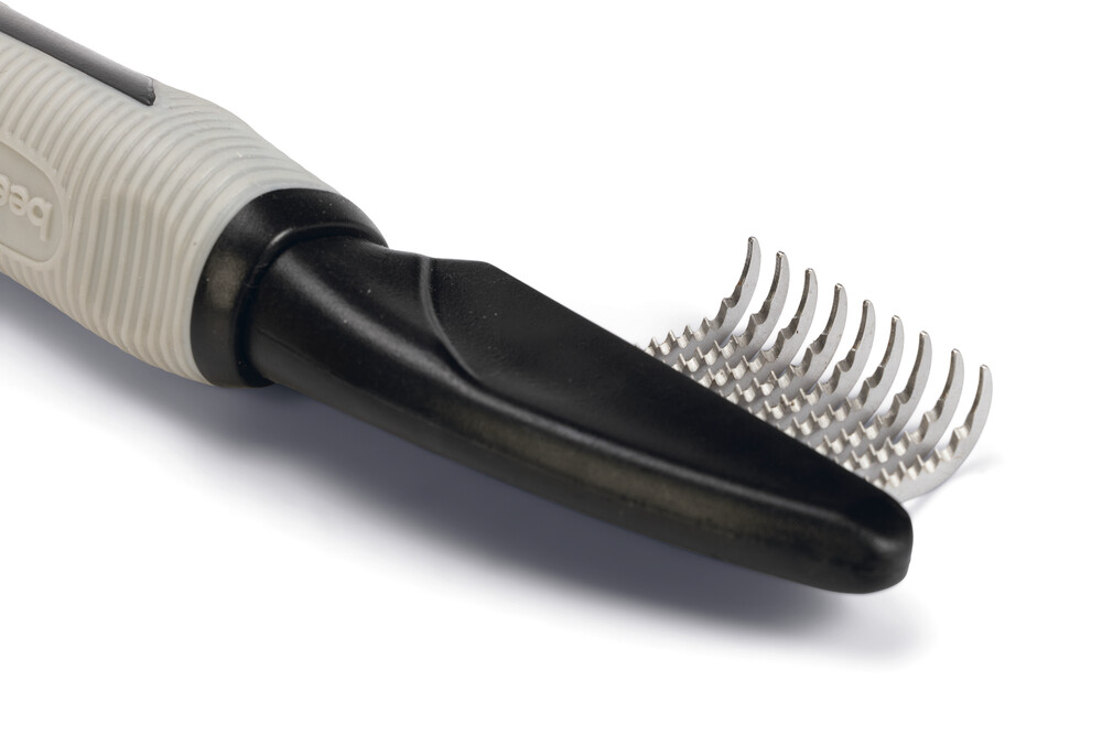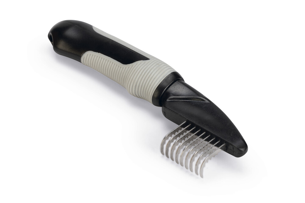 Beeztees Dematting Tarama Tarağı, minimum kürk kaybıyla düğümleri çıkarmak için idealdir. Kalın bir düğümü çok sert çekmemeye çalışın. Sadece bıçağın düğümü dikkatlice kesmesine izin verin. Bacaklardan başlayarak yukarı doğru çalışın. Not: Keskin kenarları ciltten uzak tutun. - Yumuşak tutuş - 2 modelde mevcut Ölçüler: - Orta: 19x5x2 cm - Orta uzunluktaki kürklere ideal - Kaba: 19x5x2 cm - Uzun kürklere ideal