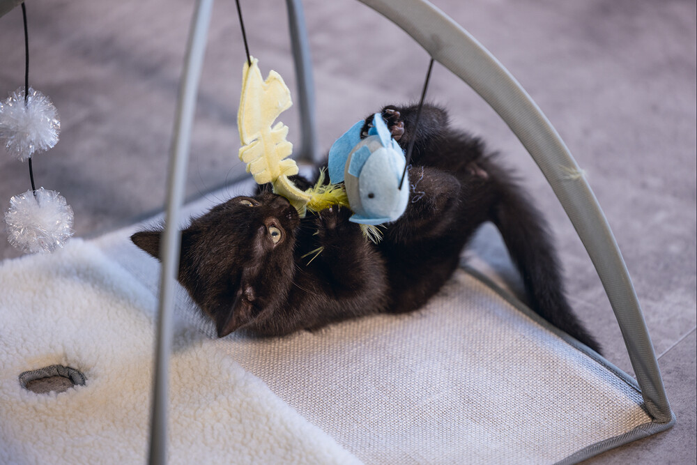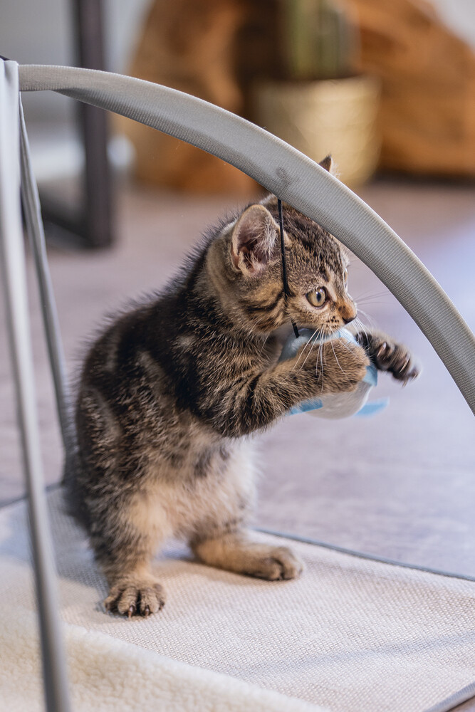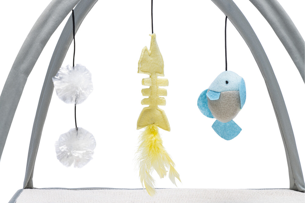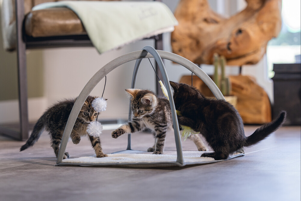 Oh ne kadar mutlu olacak kediniz bu kedi oyuncağı Playground Xabia ile. Farklı malzemelerden dolayı, jüt ve taklit koyun derisi mat gibi, yavru kedinizi farklı malzemelere alıştırmayı öğretirsiniz. Playground Xabia aynı zamanda bir 'yavru kedi jimnastiği'ne benzer. Bu, oyun matının üzerindeki gergin kemerlerden kaynaklanmaktadır. Kemerlerin üzerinde elastik bir kordonda asılı üç oyuncak olacak. Kedi oyuncağı, bir peluş balık, tüylerle bir balık kemiği ve iki çıtçıtlı folyo top içerir. Beeztees Kitten Playground Xabia kaymayı önlemek için kaymaz çiviler içerir. - Jüt ve taklit koyun derisi mat - Oyun kemerleri içerir - 3 kedi oyuncağı içerir - Kaymaz altlık içerir Ölçü: 40x40x33 cm