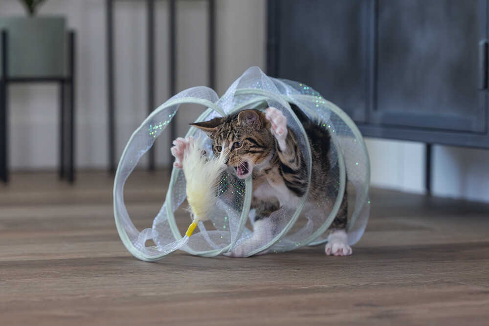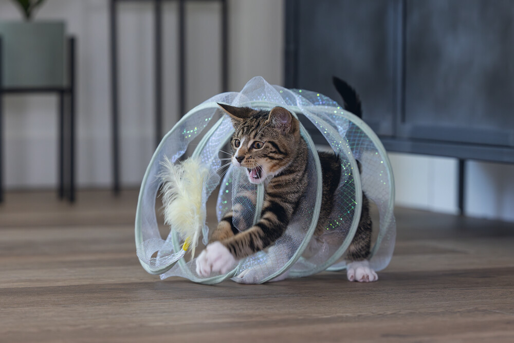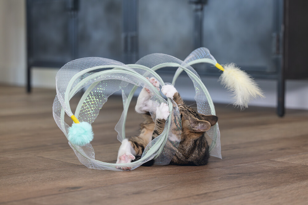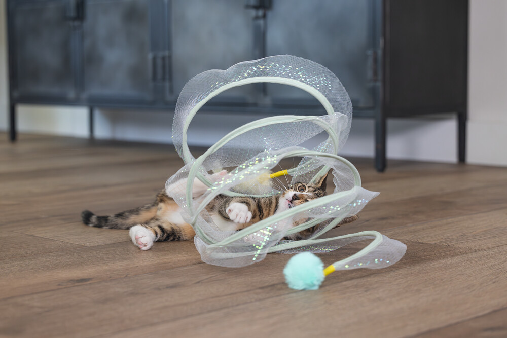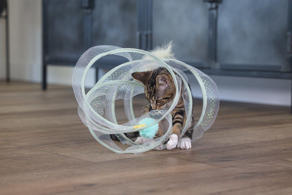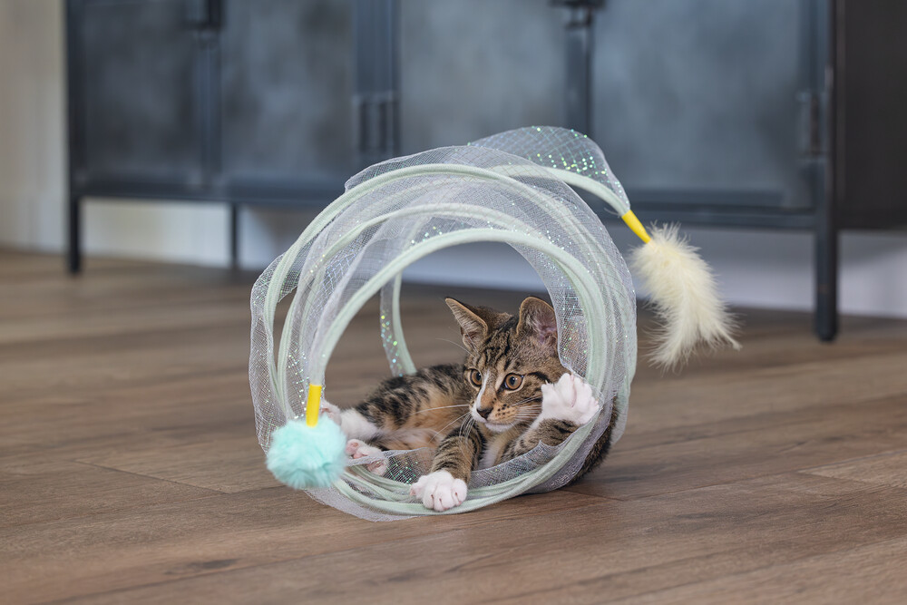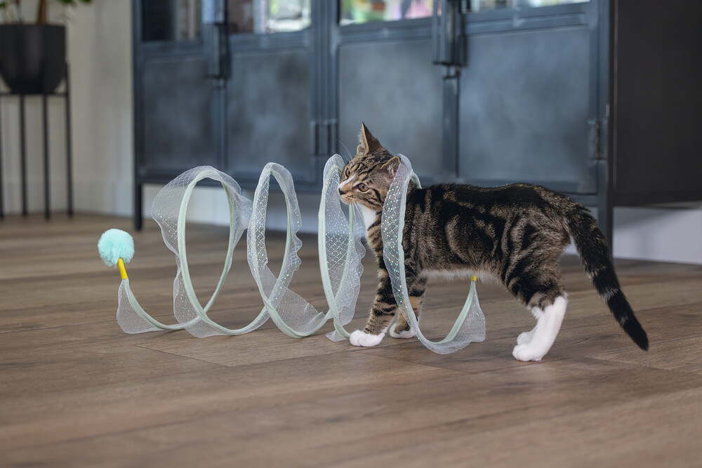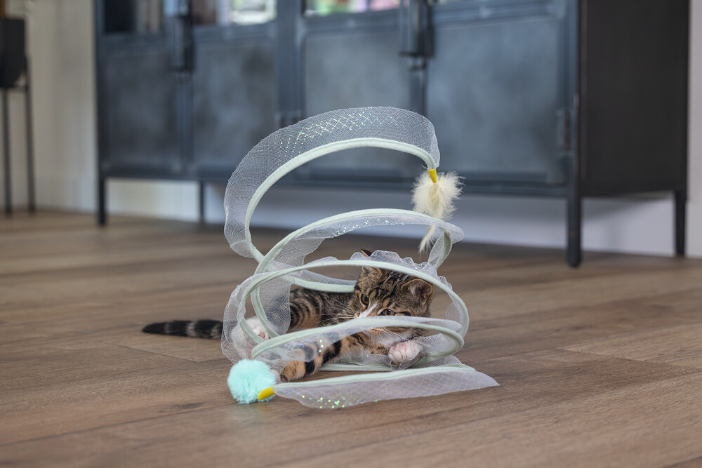 Beeztees Kitten Play Spiral Gabi, bir kedi tüneli ve oyuncak bir arada. Aslında, yavru kediniz içinden geçebilir. Bu tünelde yer alan metal halkalar, spirali açık tutar. Açık tasarım sayesinde, tüylü dostunuz her şeyi sürekli gözlemleyebilir. Dış kısmı parıldayan bir kumaşla kaplıdır ve uçlarında ekstra meydan okuma sağlayan eğlenceli oyun elementleri bulunur. Bir uçta bir tüy, diğer uçta bir oyun topu bulunur. Yavru kediniz bu oyuncakla sonsuza kadar eğlenebilir. Güzel bir ekstra olarak, spiralı kullanmadığınız zaman katlayabilirsiniz. Küçük tüylü dostunuzun bu harika yavru kedi oyuncağı ile keşfetmesine izin verin. - Metal ve kumaştan yapılmıştır - İki oyun elementi içerir - Saklaması kolay Ölçüler 60x25x25 cm