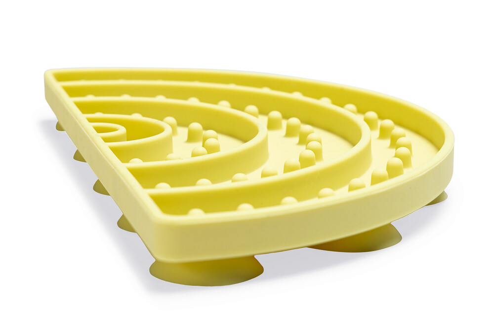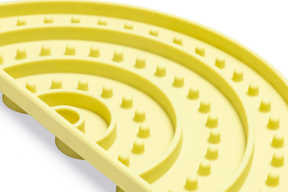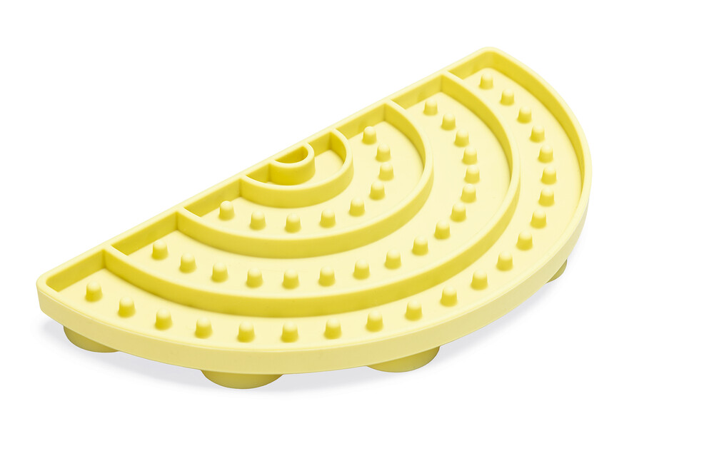 Beeztees Puppy Licking Mat Rainbow Sem ile yemek yemeyi eğlenceli hale getirin. Gökkuşağı şeklindeki bu silikon yalama matı, yavru köpeğinizin seveceği şekilde eğlenceyi ve lezzeti bir araya getirir. Mat üzerine en sevdiği yavru köpek mamasını sürebilirsiniz. Gökkuşağının deseni nedeniyle, mama oyuklara sıkışacak ve yemeğini yemesi için yavru köpeğinize bir meydan okuma olacak. Mat ayrıca yavru köpeğinizi hızlı yememeyi öğretmek için de kullanılabilir. Diş değiştirirken ağızda rahatlama sağlamak ister misiniz? O zaman yalama matını yiyecek dahil dondurucuya koyun. Bu yalama matı, stresli anlarda veya yavru köpeği oyalamak için de kullanılabilir. Yavru köpeğiniz bir süre çevreyi unutacak şekilde daha uzun süre konsantre olmalıdır. Silikon vantuzlar matın yerinde kalmasını sağlar. Bulaşık makinesinde kolayca temizleyebilirsiniz. - Bulaşık makinesinde yıkanabilir - Silikon - Hızlı yemeyi önler - Dondurucuya konabilir - Stres azaltıcı - Mikrodalgada 600 Watt'a kadar güvenli Ölçüler: 20x
