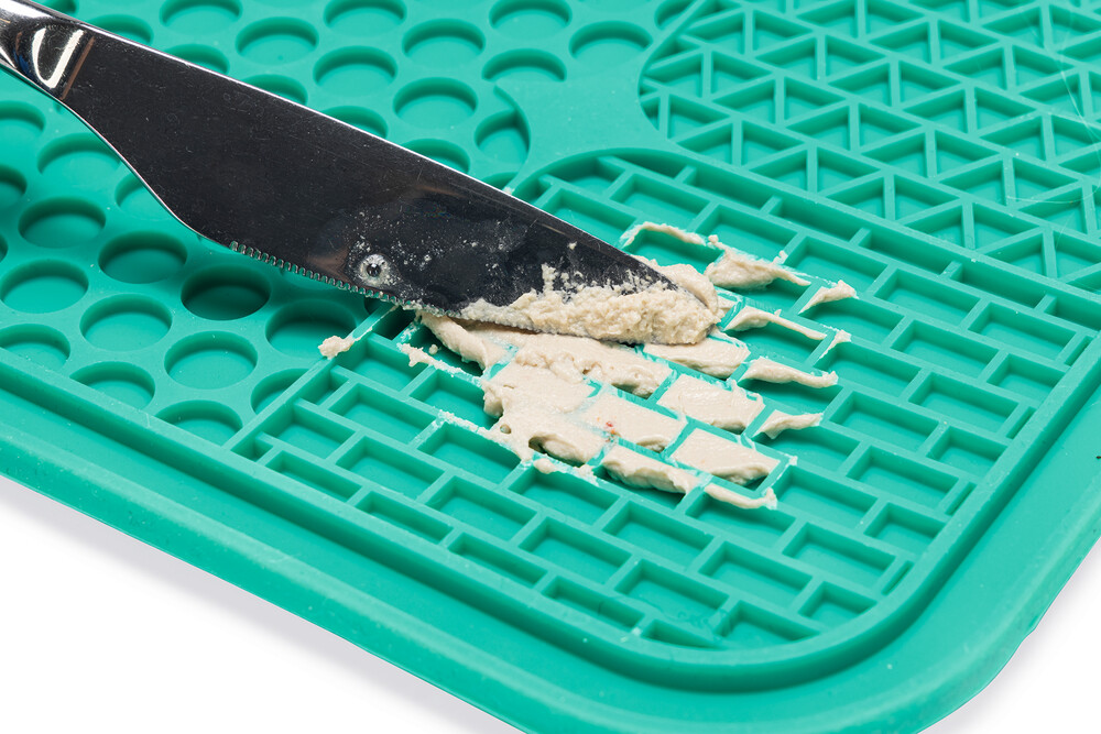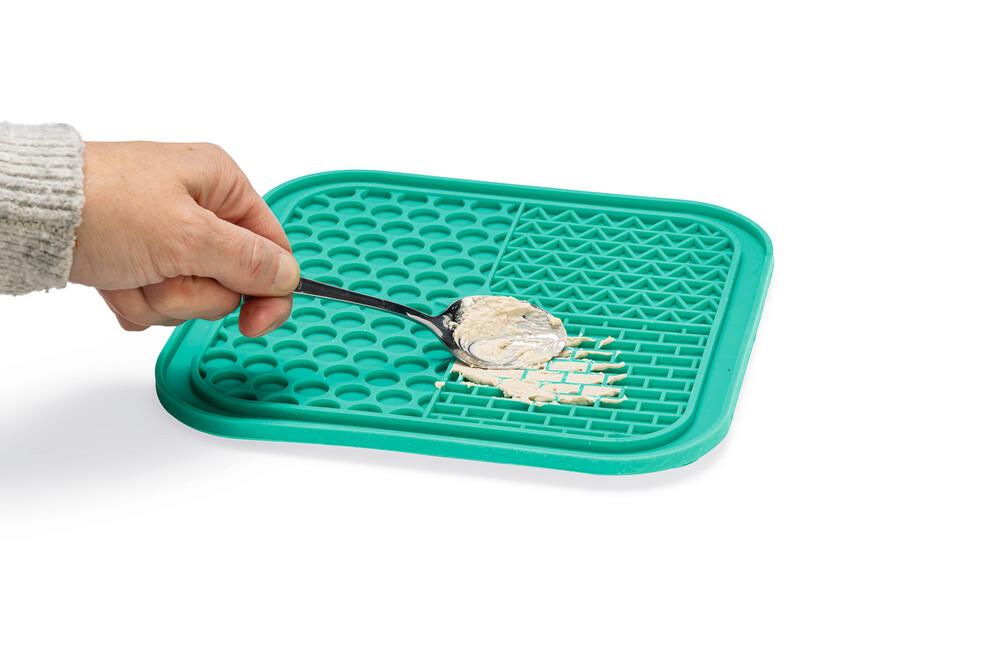 Beeztees Lick Mat Connoisseur ile köpeğiniz için lezzetli bir yemek hazırlayabilirsiniz. Üç farklı desene sahip bu yalama matı, sadece eğlenceli bir aktivite sunmakla kalmaz, aynı zamanda köpeğinizin atıştırmalığını daha uzun süre keyifle yemesini sağlar. Yalama matı, yiyeceklerin matın oyuklarına yerleşmesi sayesinde köpeğinizin yemeğini hızlıca yemesini önler. Matı yalamak köpeğinize rahatlama sağlar ve yalama matının dokusu köpeğinizin dilini de temizler. Yalama matı silikondan yapılmıştır ve kaymayı önlemek için altında vantuzlar bulunur. Yalama matını dolgu ile birlikte dondurun ve köpeğinize sıcak yaz günlerinde lezzetli bir taze atıştırmalık verin. Yalama matı bulaşık makinesinde temizlenebilir. - Yavaş yemeyi teşvik eder ve hızlı yemeyi önler - Köpeği rahatlatır ve stresi azaltır - Oral hijyeni destekler - Silikondan yapılmıştır - Vantuzlarla - Bulaşık makinesinde güvenli - Mikrodalga fırında 600 Watt'a kadar güvenli Ölçüler: 20x20x1cm