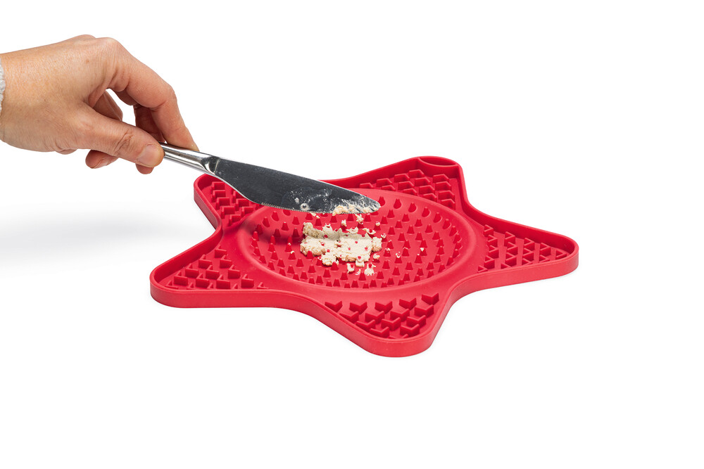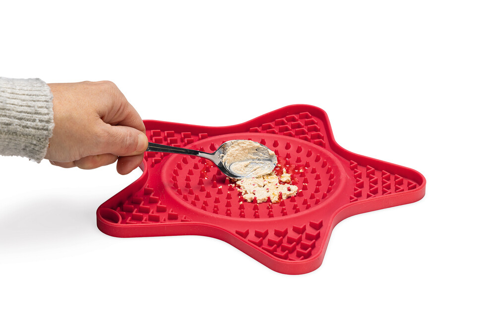 Beeztees Lick Mat Star ile köpeğiniz için lezzetli bir yemek hazırlayabilirsiniz. Bu yalama matı sadece eğlenceli bir aktivite sağlamakla kalmaz, aynı zamanda köpeğinizin atıştırmalığını daha uzun süre keyifle yemesini de sağlar. Yalama matı, köpeğinizin yemeğini hızlıca yemesini önler, çünkü yiyecekler matın oyuklarına yerleşir. Matı yalamak köpeğinize rahatlama sağlar ve yalama matının dokusu dilin temizlenmesine yardımcı olur. Bu silikon yalama matı hakkında ekstra eğlenceli olan şey, yıldızın iç kısmına ve uçlarına farklı bir tat uygulayabilmenizdir. Yalama matını dolgu ile birlikte dondurun ve köpeğinize sıcak yaz günlerinde lezzetli bir taze yemek verin. Yalama matı bulaşık makinesinde temizlenebilir. - Yavaş yemeyi teşvik eder ve hızlı yemeyi önler - Köpeği rahatlatır ve stresi azaltır - Ağız hijyenini destekler - Silikondan yapılmıştır - Bulaşık makinesinde güvenle yıkanabilir - Mikrodalgada 600 Watt'a kadar güvenle kullanılabilir Ölçüler: 24x20x1cm