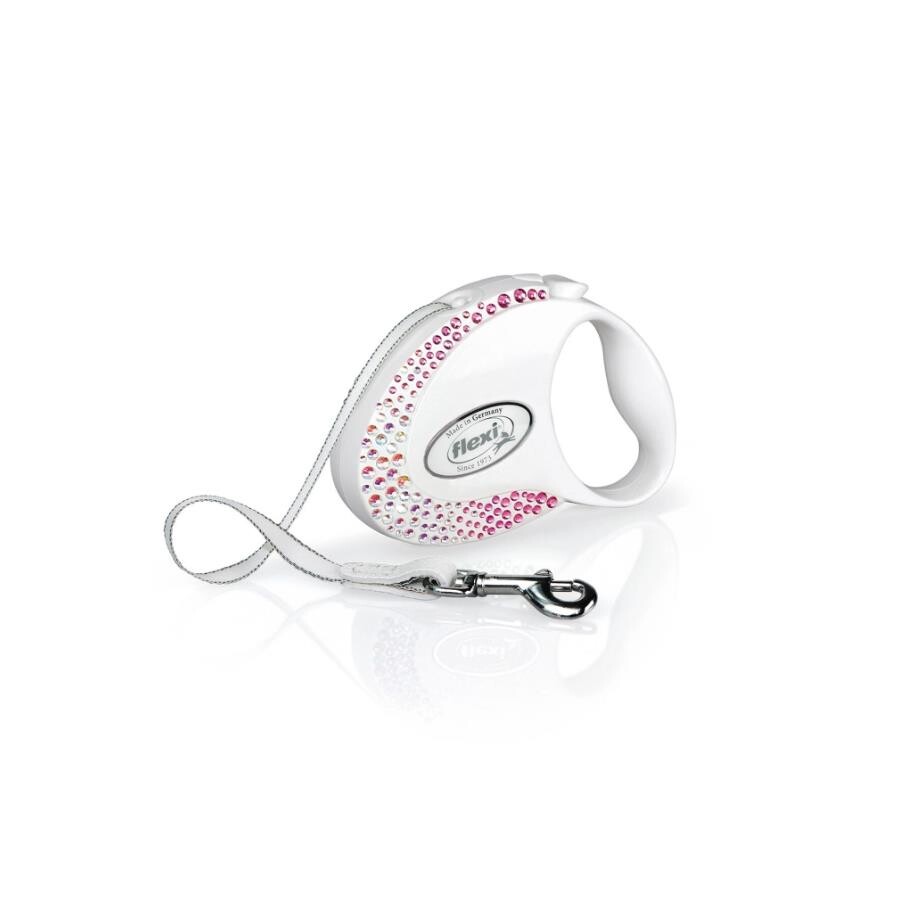 Gelince Haber VerFlexi Glam Swarovski Otomatik İp Köpek Gezdirme Kayışı 3m (Beyaz) [S]