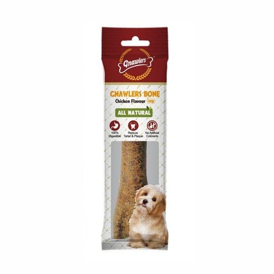 Gnawlers Tavuklu Ödül Kemiği, köpeklerin favorisi olan tavuk aromasıyla zenginleştirilmiş lezzetli ve besleyici bir atıştırmalıktır. Doğal kolajen içeriğiyle diş ve kemik sağlığını desteklerken, çiğneme ihtiyacını karşılayarak çene kaslarının gelişimine katkı sağlar. Üründeki doğal antioksidanlar ve vitaminler, bağışıklık sistemini güçlendirirken, dengeli lif oranı sindirim sistemi sağlığını destekler. Bitkisel protein, organik iz elementler ve küçük peptid proteinleri gibi değerli bileşenlerle formüle edilen bu ödül, yavru ve yetişkin köpeklerin günlük beslenme rutinine sağlıklı bir katkı sağlar.