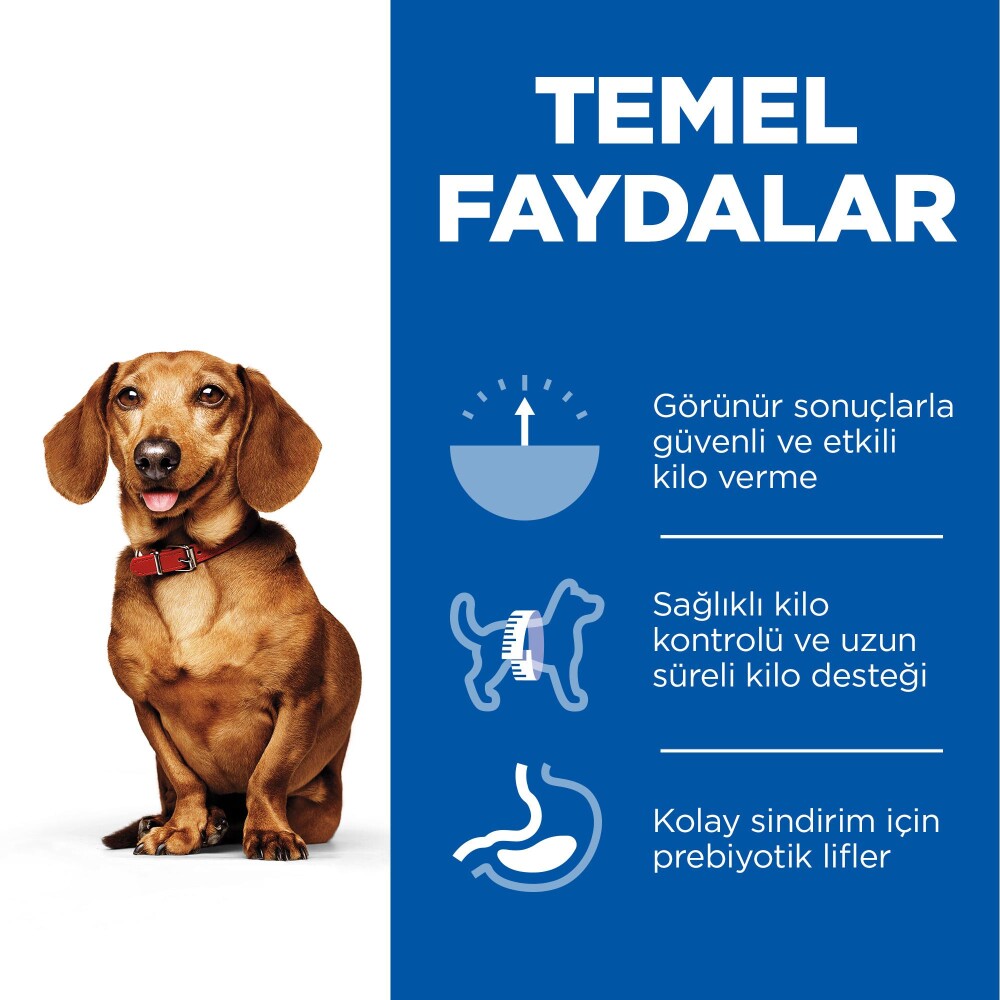 HILL'S SCIENCE PLAN Perfect Weight Small & Mini Adult Tavuklu köpek maması, sağlıklı kiloya ulaşmak ve bu kiloyu korumak için klinik olarak kanıtlanmış lezzetli beslenme sağlar. L-karnitin ve hindistancevizi yağı ile zenginleştirilmiş yüksek proteinli, yüksek lifli formülümüz evcil hayvanların metabolizmasını desteklemeye yardımcı olur.> Temel Faydalar