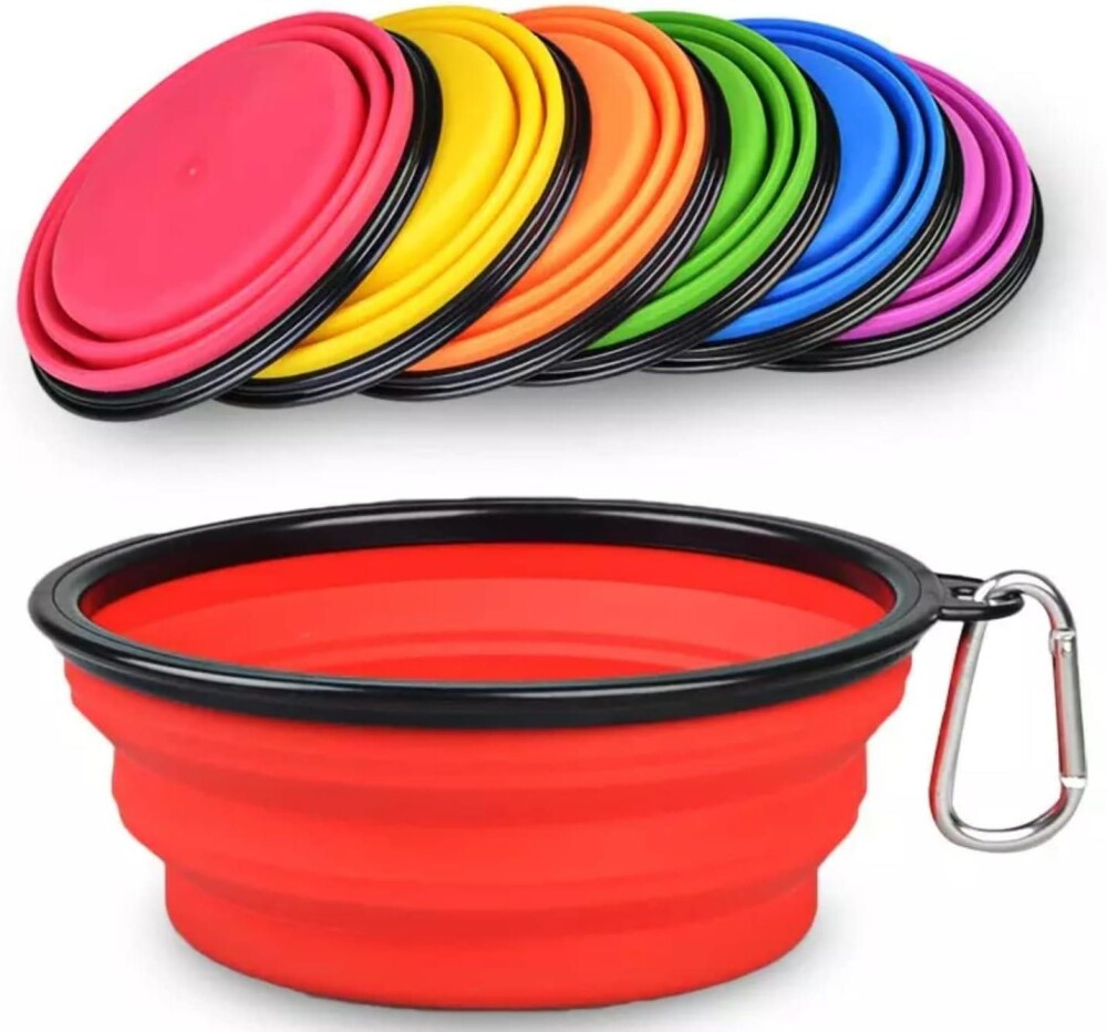 Kedi ve köpekler için katlanabilir silikon ,seyahat su ve mama kabı