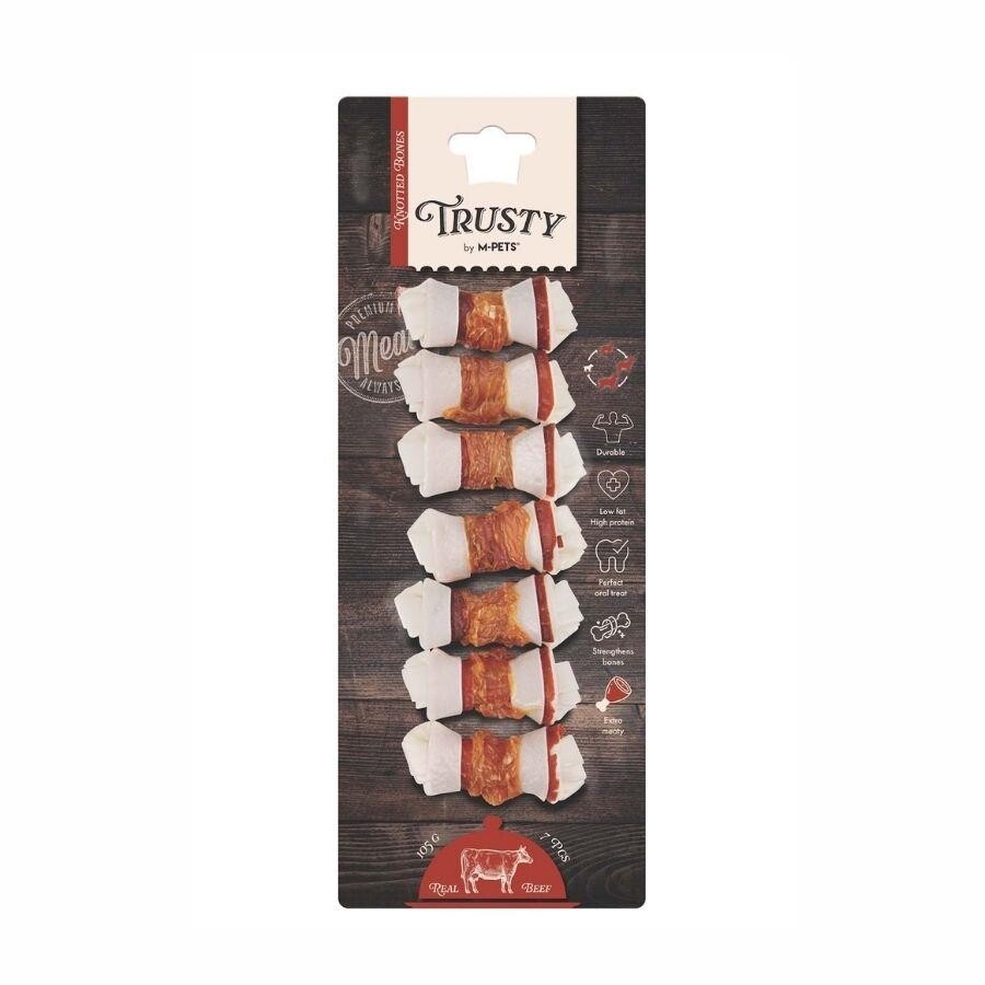 M-PETS Trusty Knotted Bones Extra Meaty, dana aromalı içeriği ve ekstra et kaplamasıyla köpeğinizin iştahını kabartan lezzetli bir ödüldür. Düşük yağ, yüksek protein içeriği sayesinde formu korurken besin değeri sunar. Dayanıklı yapısıyla uzun süreli çiğneme deneyimi sağlar, diş etlerini güçlendirir, tartar oluşumunu azaltır ve kemik sağlığını destekler. Küçük ırklar ve sık ödül vermek isteyenler için 7’li set halinde sunulur.