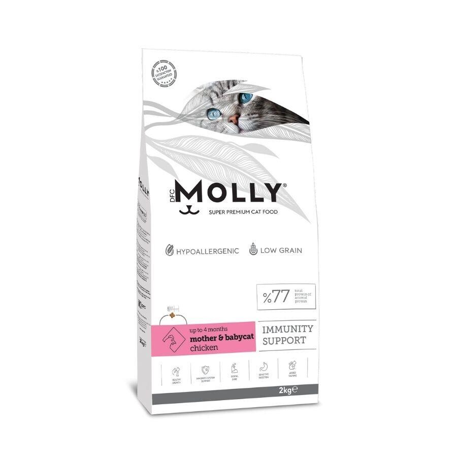 Molly Yavru Kedi Maması, 4 aya kadar yavru kediler ile hamilelik ve emzirme dönemindeki anne kediler için profesyonel beslenme uzmanları tarafından formüle edilmiş ve yüksek kaliteli içeriğinden dostlarımızın tam olarak faydalanması hedeflenerek ileri ekstruder teknolojisi ile üretilmiştir. Yavru kedilerinizin sağlıklı bir metabolizma ve kemik gelişimini desteklemek üzere Omega-3 yağları ve temel mineral ve vitaminler ile zenginleştirilmiştir.