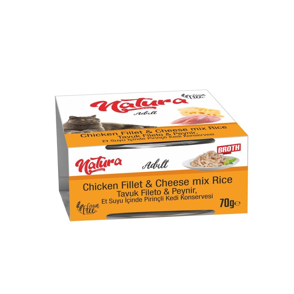 Yetişkin kedilere özel olarak üretilmiş tavuk eti, pirinç ve peynir katkılı, %100 doğal ürünlerden oluşturulmuş, jöle içerisinde parça etli yaş mama.