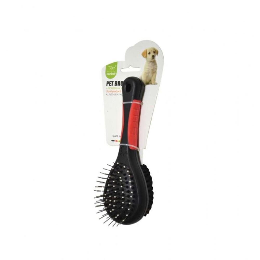 Gelince Haber VerNunbell köpek fırçası, kıl fırça yüzeyi ve ince yumuşak tel uçlu fırça yüzeyine sahiptir. İki farklı yüzeyi sayesinde çok amaçlı kullanılabilen ideal köpek fırçası çeşididir. Köpekler için tüy bakımı önemlidir. Kılların bir ömrü vardır ve ölü tüyler dökülerek yerine yeni tüyler çıkar. Eğer ölü tüyler düzenli olarak fırçalanmaz ise eviniz kısa sürede tüylerle dolar. Nunbell köpek fırçasının her iki yüzeyi de ölü tüylerin toplanmasını kolaylaştırır.