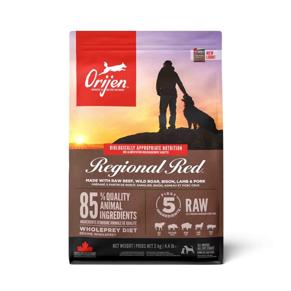 Tam beslenme için geliştirilmiş olan ORIJEN REGIONAL RED, Siyah Angus sığırı, yabandomuzu, koyun, doğal ortamlarında yetiştirilen domuz ve bizon eti içermektedir. Bunların tümü yerel çiftliklerde yetiştirilmekte, insani tüketim uygunluk testinden geçmekte ve ardından mutfaklarımıza HER GÜN TAZE olarak ulaştırılmaktadır.