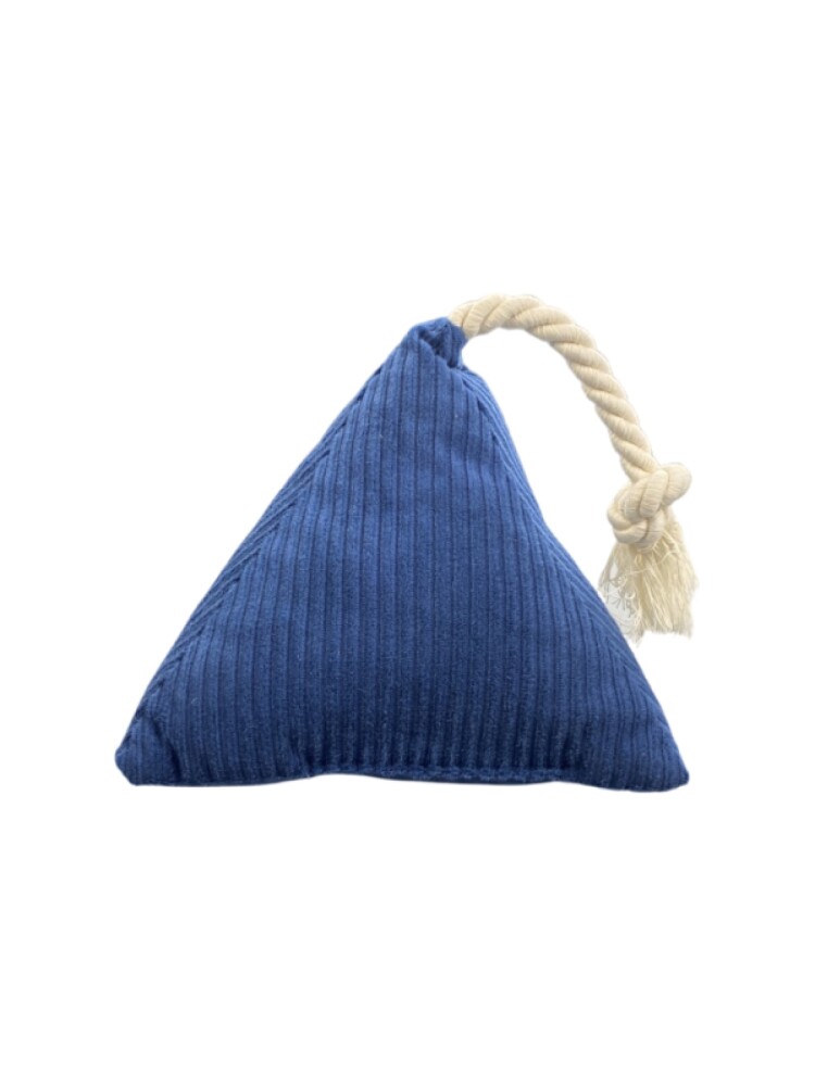 Piramit şeklinde içi elyaf dolu, ucunda oyun ipi bulunan köpek oyuncağıdır. Parçalanıp yutulursa dışkı ile birlikte kolay ve bağırsaklara zarar vermeden atılabilir. Bu oyuncak ile oynarken aynı zamanda köpeğinizin dişleride temizlenecektir. Çamaşır makinasında 30C de yıkanabilir. Oyun bitimi oyuncağı köpeğinizin önünden alınız, oyuncak ile yalnız bırakmayınız.
