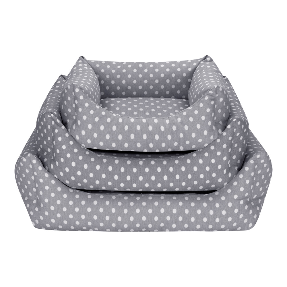 Pet Comfort Uniform Gri Puantiyeli Kedi ve Köpek Yatağı M 50x60cmYetişkin ağırlığı 10Kg’dan az, küçük ırk köpekler ve tüm kedi ırkları için uygun konforlu ve rahat köpek ve kedi yatağıdır.Ekonomik, modern, şık ve çok konforludurModern, dekoratif tasarımı ile evinize şıklık katarYatağın yüksekliği 17cm'dirİç ölçüleri 31x36cm’dirSabit yastıklıdırYüksek kaliteli baskılı kumaştan yapılmış kılıfYanlarda ve minderlerde birinci kalite elyaf dolguYüksek kaliteli evcil hayvan dostu kumaşYatak kılıfı, 30C'de çamaşır makinesinde yıkanabilirYüksek kaliteli kaymaz tabanPE poşet içerisinde normal veya vakumlu paketlemeTürk Malı