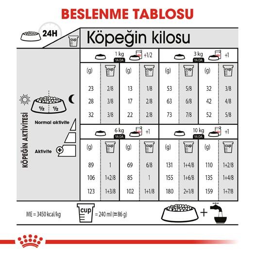 Kısırlaştırılmış yetişkin küçük ırk ve ağırlığı 10 kg’ye kadar olan köpek için idealdir. Yüksek protein içeriği (%30) ve ölçülü miktarda yağ içeriği (%13) ile bu formül, köpeğinizin ideal kilosunu korumaya yardımcı olur. Küçük ırk kısırlaştırılmış köpekler için geliştirilen bu besleyici formül, L-Karnitin ve sağlıklı bağırsak geçişine yardımcı liflerle zenginleştirilmiştir. Bu sayede köpeğinizin aynı miktarda gıdayla alacağı kalori miktarını kısıtlamaya destek olur.