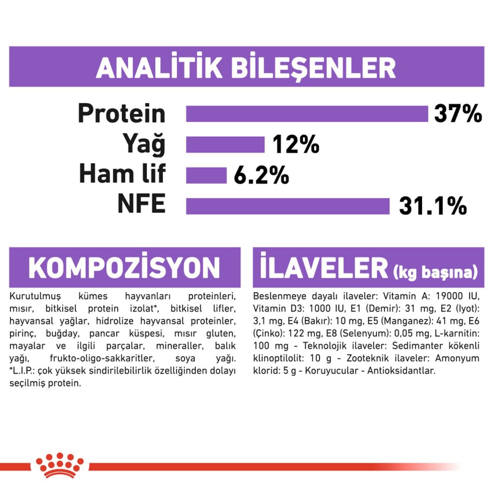 - Artırır ve kasları korur, yüksek protein içeriği (% 37) ile 40 yıldan fazla bir süredir Royal Canin evcil hayvanınızın sağlık paraboldiğerleri arasında "Sağlık Beslenme" ürün yelpazesi giden işlerini yapmaktadır. Sadece evcil hayvanınızın tam beslenmegereksinimleri bilgisine sahip ve her hayvanın bireysellik saygı ile mükemmel bir yemek tam evcil hayvanınızın ihtiyaçlarını karşılamak için geliştirilmiş ve imal edilebilir