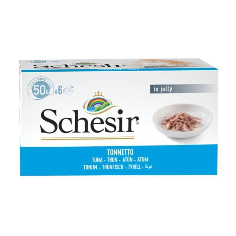 Schesir ton balıklı yaş mama paketi, 6 adet 50 gr'lık konserve mama bulunan multipack ambalajdadır. Eşsiz lezzeti ile kedinizi cezbedecek olan Schesir yaş mama jöle içerisinde parça şeklinde ton balığı içermektedir. Kedinizin ihtiyaçlarını eksiksiz tamamlayacak kaliteli içeriğe sahiptir.