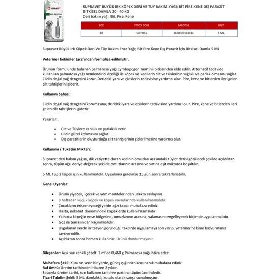Gelince Haber VerSupravet Büyük Irk Köpek Deri Ve Tüy Bakım Ense Yağı; Bit Pire Kene Dış Parazit İçin Bitkisel Damla 5 ML