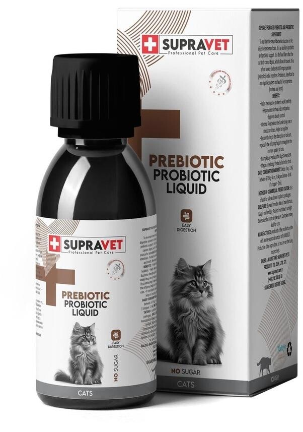 Supravet kediler için Prebiyotik ve Probiyotik takviyesi, kedilerin normal bağırsak sağlığının korunması, sindirim sorunlarının giderilmesine yardımcı olmanın yanı sıra, stresi hafifletmeye, akut enteritten sonra sindirimi iyileştirmeye, apetiti geri yüklemeye ve bağışıklık sistemini güçlendirmek için kullanılabilir.